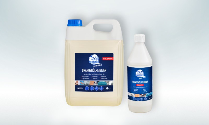 Our PROFESSIONAL Orange Oil Cleaner convinces with its high effectiveness for removing ink and ballpoint pen stains and chewing gum from textiles, upholstered furniture and carpets. Also removes fat deposits and various types of dirt with a pleasant orange scent.